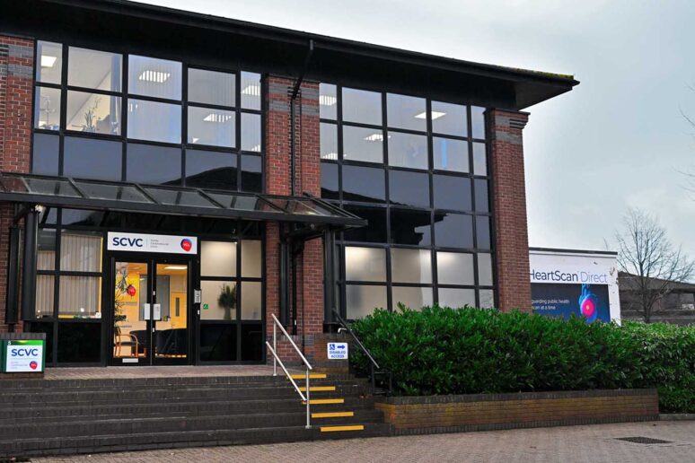 At the next roundabout take the 3rd exit. Go straight across the traffic lights onto Gill Avenue, past The Royal Surrey County Hospital on your right. At the mini-roundabout turn right onto Occam Road. Continue for approximately 50 metres, and turn right into Huxley Road. The Surrey Cardiovascular Clinic will be found on the right hand side.