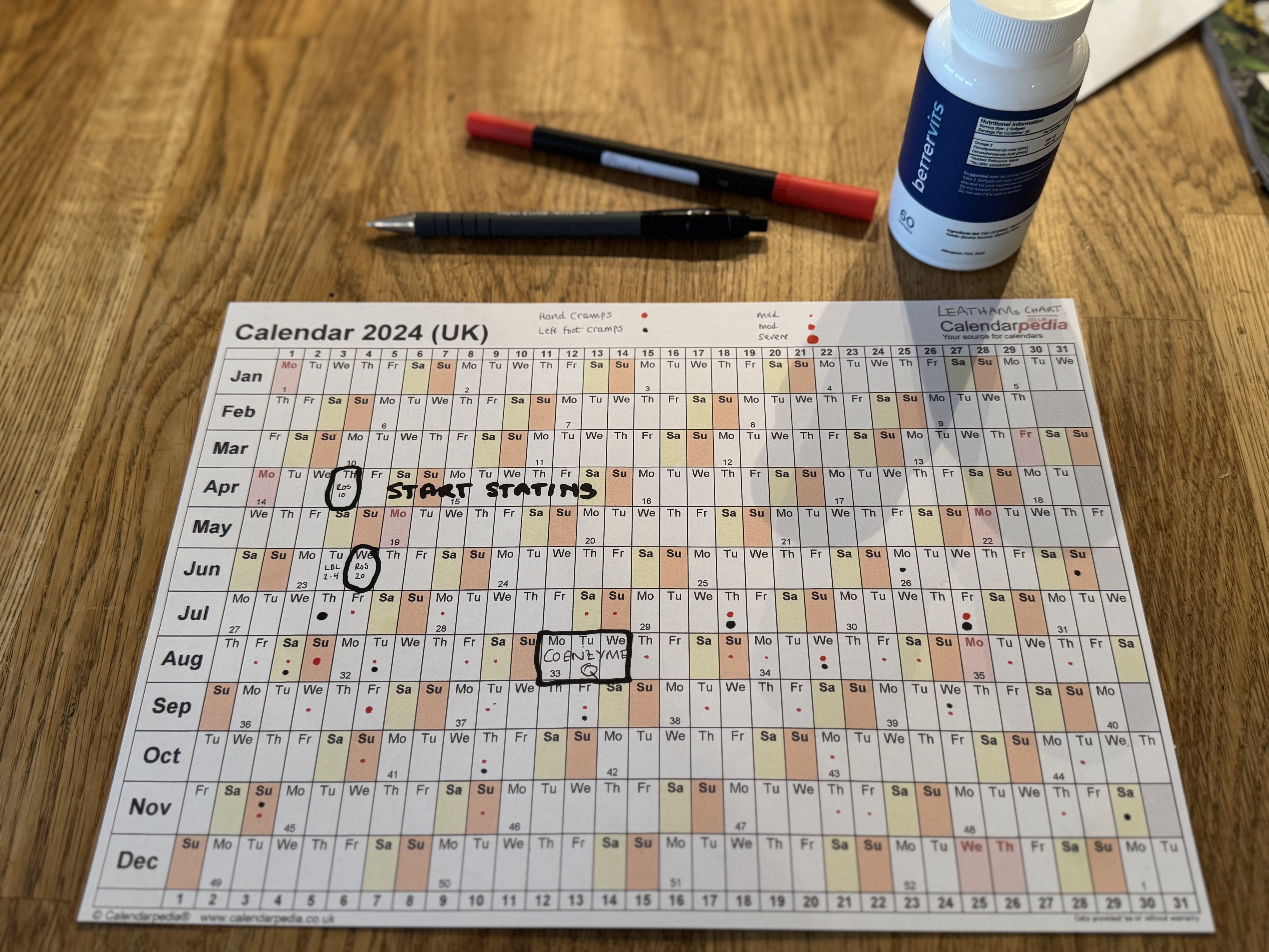 A key component of evaluating statin-related symptoms is tracking them systematically. A symptom diary can help you visualise the severity and frequency of side effects over time. A “year-at-a-glance” dot plot is particularly useful. Here’s how it works: