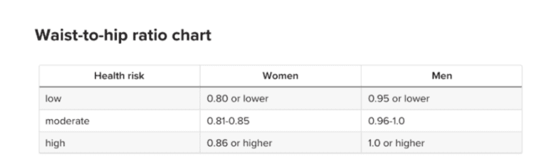 - Height to waist ratio M 0.46-0.53 F 0.46-0.49