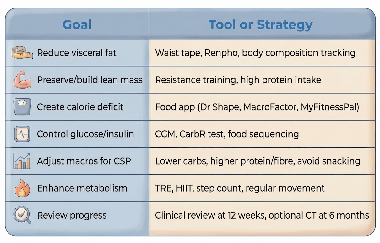 You can reduce visceral fat with or without medication — but it requires consistency, insight, and personalised feedback. This is not a one-size-fits-all programme. It’s a guided experiment, and you are the subject.